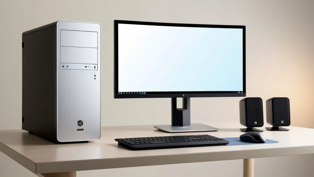 - Τι είναι ένα desktop PC; Είναι ο προσωπικός υπολογιστής που αποτελείται από διάφορα κομμάτια, σχεδόν πάντα ετερόκλητα μεταξύ τους, τα οποία στο σύνολό τους φτιάχνουν τον λεγόμενο ‘πύργο‘, το βασικό κομμάτι μέσα στο οποίο γίνονται οι υπολογιστικές διαδικασίες. Πρέπει να συνδεθεί οπωσδήποτε και τουλάχιστον με:
